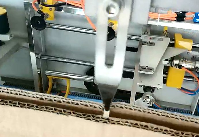 1、取箱時(shí)紙箱沒有打開。如圖所示,這個(gè)客戶的情況是在取箱的過程中,紙箱就沒有打開,還是一個(gè)整體的狀態(tài)被吸取,所以在折箱時(shí)就會報(bào)警并且掉箱。這個(gè)問題的出現(xiàn)主要是因?yàn)橛脩粼谡{(diào)整開箱機(jī)時(shí),沒有將撥針放到紙箱的縫隙處,導(dǎo)致紙箱在取箱過程中沒有被撥開。